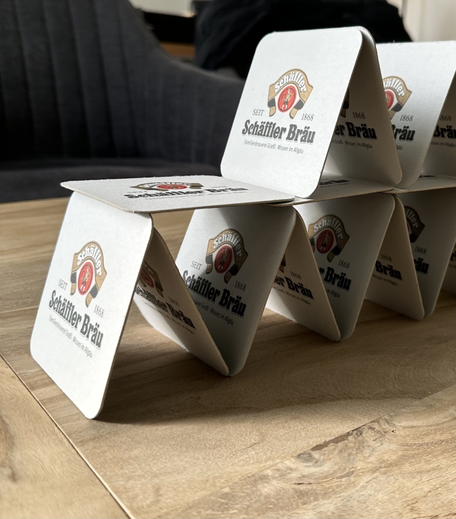 Und zum Schluss? Upcycling ist angesagt: Aus den kleinen Deckeln werden kreative Kunstwerke. So wird aus dem simplen Bierdeckel ein Held des Spiels, der Baukunst und der Nachhaltigkeit – immer mit Spaß dabei!